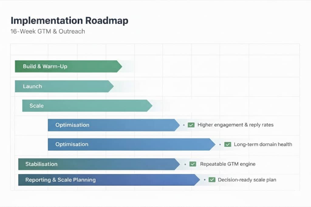 We focus on execution over theory. Our process is designed to turn GTM into a reliable growth channel through clarity, structure, and continuous optimisation.